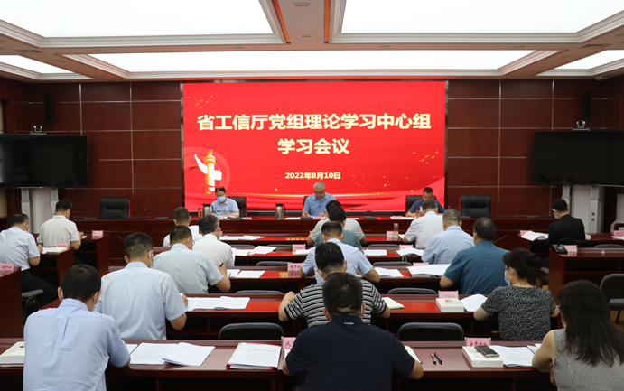 8月10日,省工信廳召開黨組理論學習中心組集體學習會議,廳黨組書記、廳長盛云峰同志主持會議并講話。廳黨組成員、副廳長,一、二級巡視員,駐廳紀檢組,機關(guān)各處室(中心)、在蘭廳屬各單位負責人參加會議。